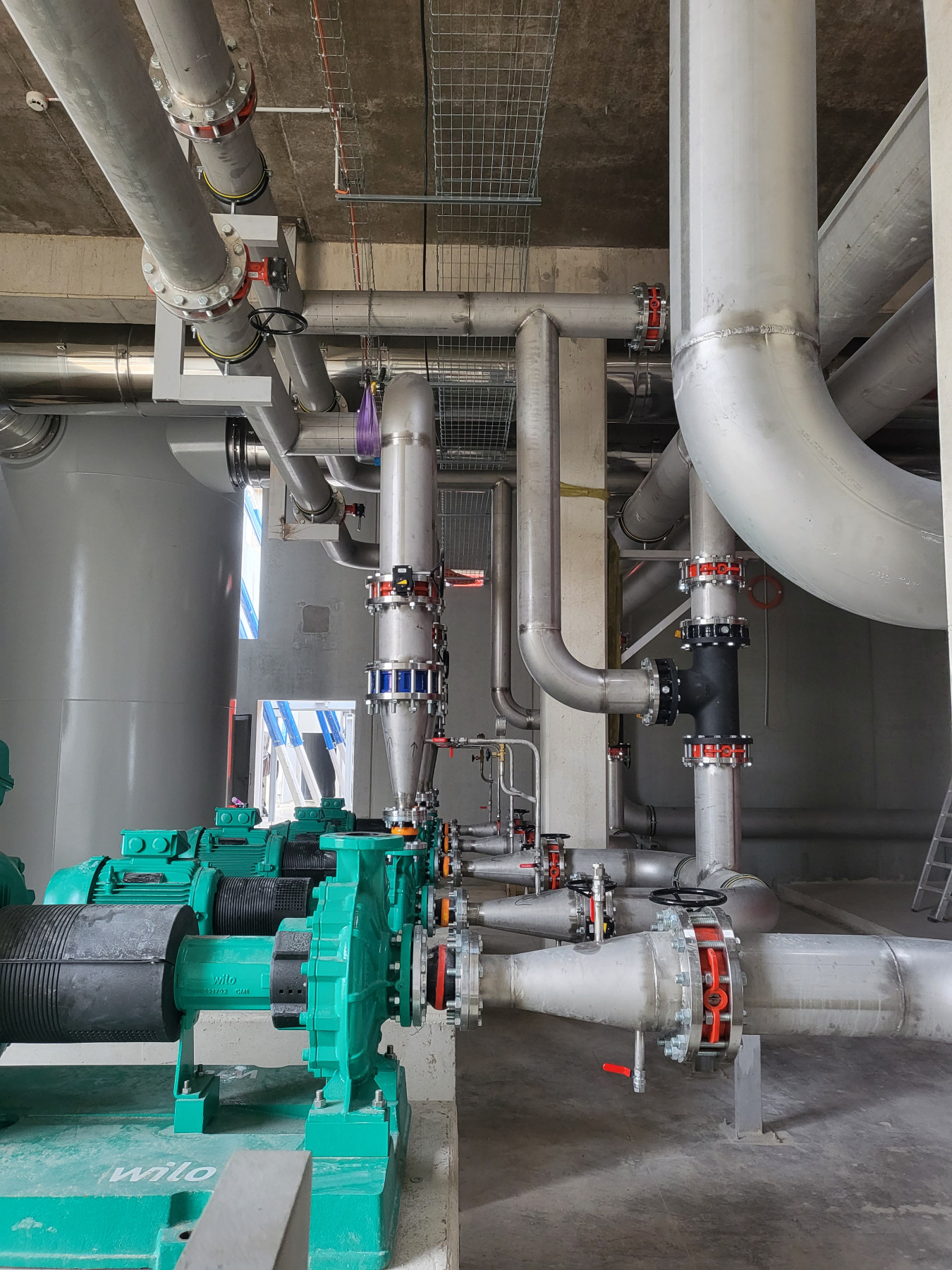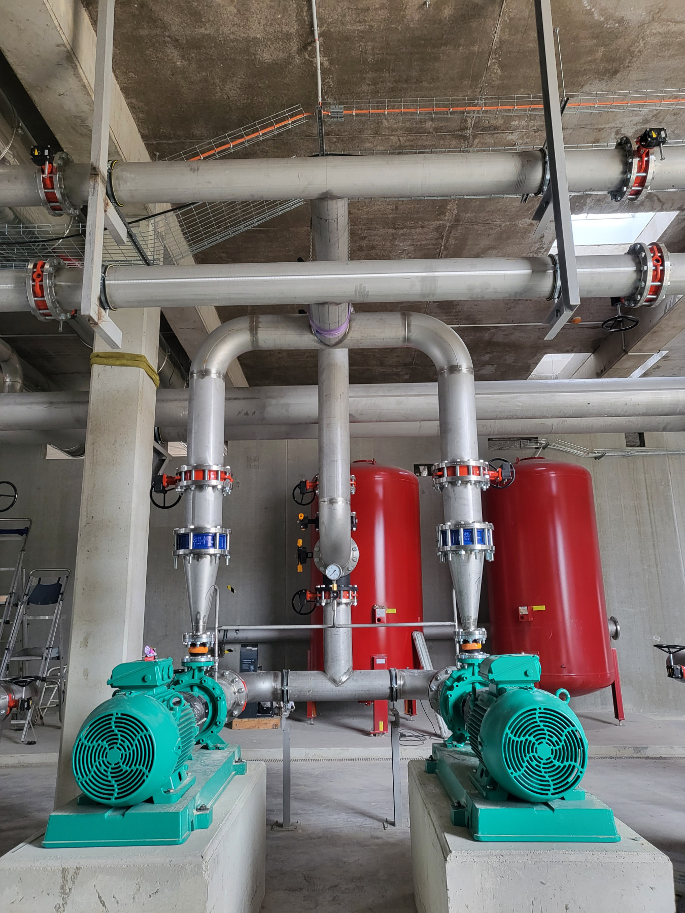 Fourniture, mise en œuvre et raccordement hydraulique des nouveaux tronçons de tuyauteries primaires, en aval des brides d’attente, jusqu’à leur connexion au réseau en service, après réalisation et remblaiement des canalisations enterrées.